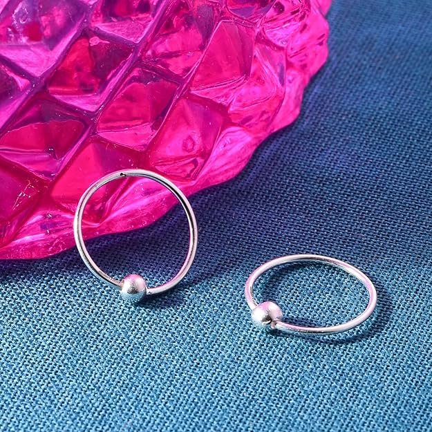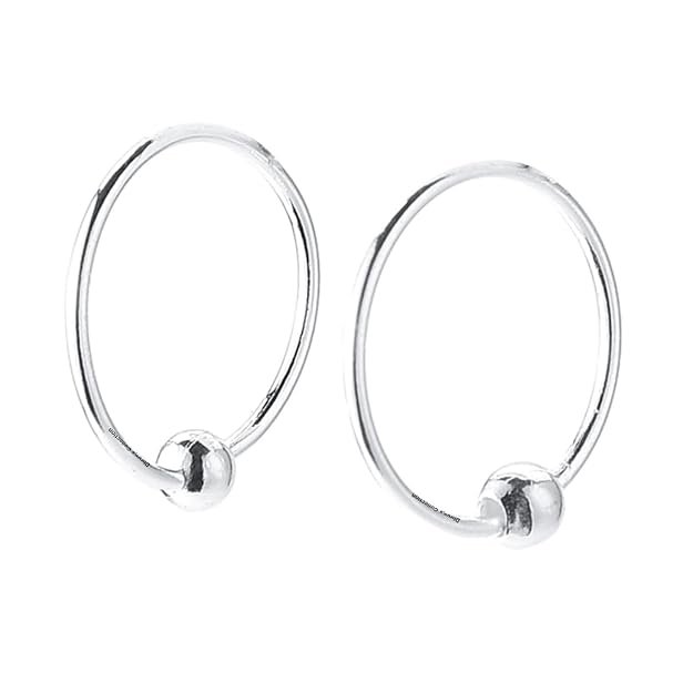 DHRUVS COLLECTION 925 Silver Bali Hoop Ball Earrings For Girls & Women – 12 mm