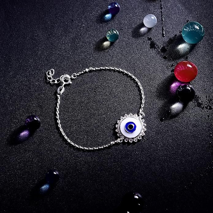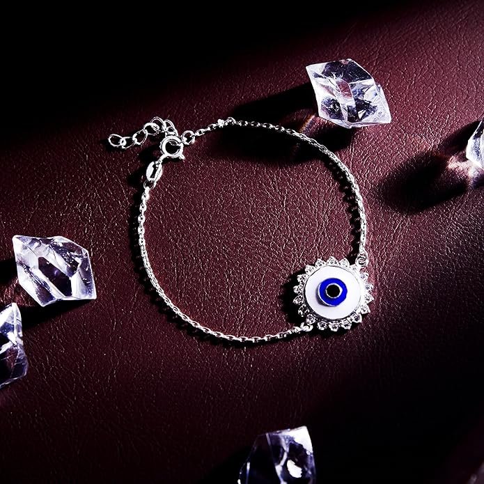 DHRUVS COLLECTION 925 Silver Evil Eye Adjustable Halo Bracelet for Girls and Women | Hypoallergenic & Unisex Jewellery Gift – 3.2 Grams