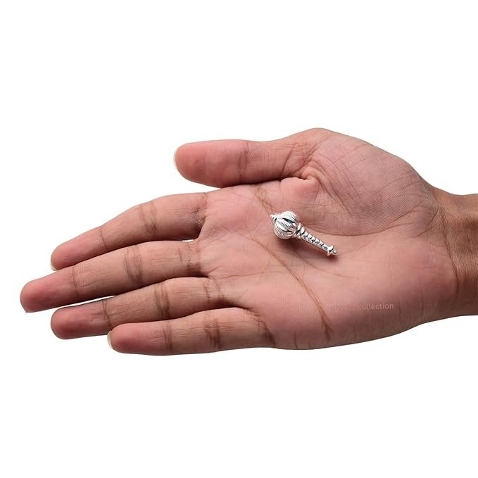 • SACRED SYMBOL: Pure silver gada (mace) idol, beautifully representing Lord Hanuman’s divine weapon, measuring 3.2 centimetres in length, inspiring devotion and strength.