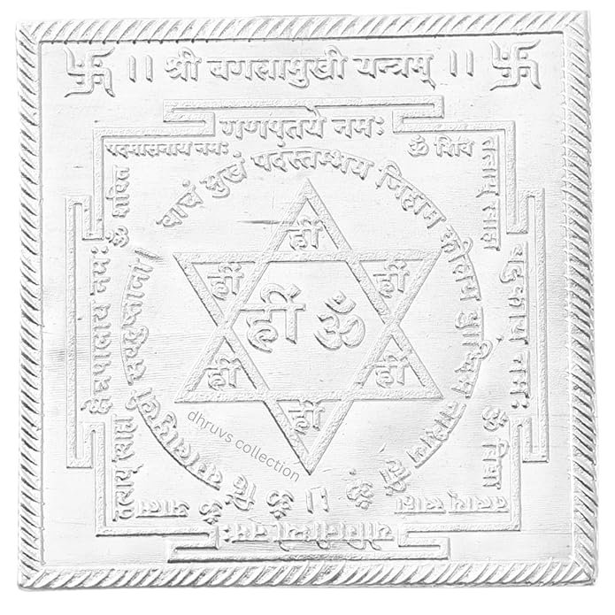 DHRUVS COLLECTION 925 Silver Shree Baglamukhi Yantra for Home, Office, Business Place, Pooja Worship, Gifting & Donation – Spiritual Healing, Square Shape, Metal Made, Size 2.5 x 2.5 Inches, 3.7 Grams