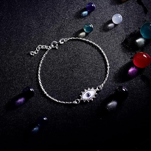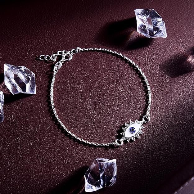 DHRUVS COLLECTION 925 Sterling Silver Evil Eye Adjustable Halo Bracelet for Girls and Women | Hypoallergenic & Unisex Jewellery Gift – 2.1 Grams