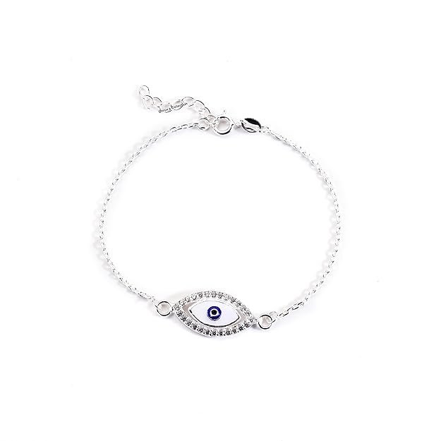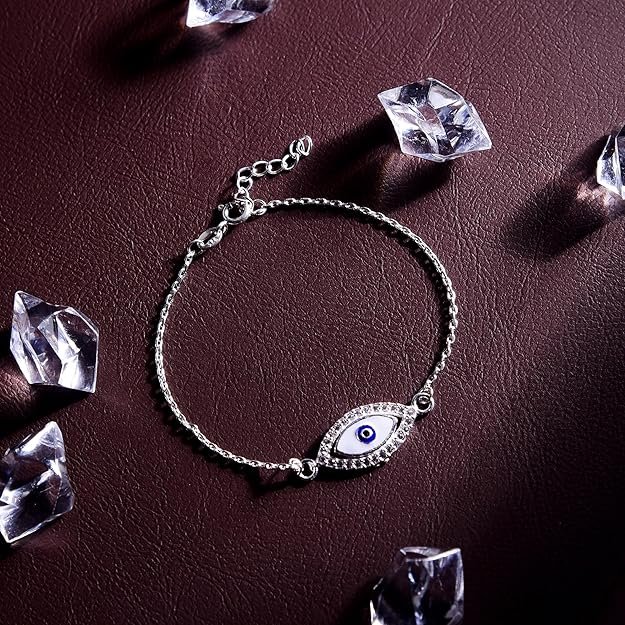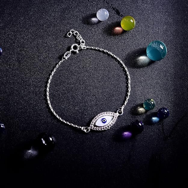 DHRUVS COLLECTION 925 Sterling Silver Evil Eye Adjustable Halo Bracelet for Girls and Women | Hypoallergenic & Unisex Jewellery Gift – 3.2 Grams