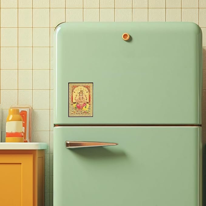 DHRUVS COLLECTION Gold Plated Ganesh Ji Fridge Magnet with Lacquer Coating for Home Decor, Kitchen, Car Dashboard, Main Door, Office, Pooja, Temple, Workplace