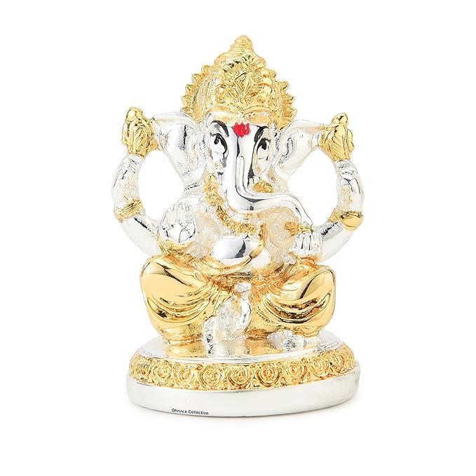- Pure 24k Gold Coating: This exquisitely crafted gold-plated Ganesh Ji idol features intricate detailing, making it a perfect spiritual addition to your car dashboard, office desk, or home mandir. Enhance the beauty of your space with our exquisite 5.8 cm Gold Ganesha Idol, meticulously crafted with a pure 24k gold coating. This elegant Ganesh Idol for Car Dashboard adds a touch of sophistication to your car’s interior or any worship area.