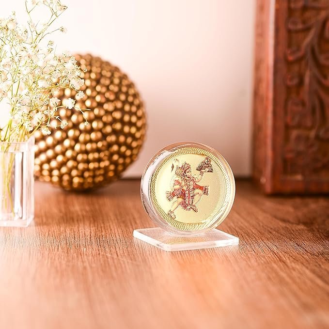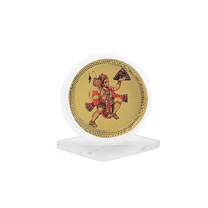 DHRUVS COLLECTION Gold Plated Hanuman Ji Idol 3D Acrylic Photo Frame Stand for Home Decor, Car Dashboard, Office Table, Pooja, Temple, Workplace, Housewarming Gift (1.75 x 1.5 Inch)