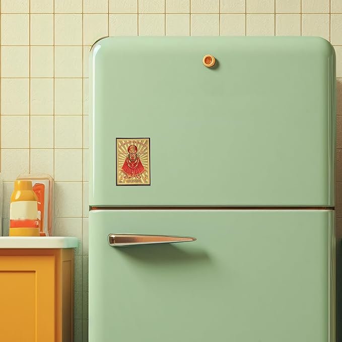 DHRUVS COLLECTION Gold Plated Hare Ka Sahara Baba Shyam Hamara – Khatu Shyam Fridge Magnet with Lacquer Coating for Home Decor, Kitchen, Car Dashboard, Main Door, Office, Pooja, Temple, Workplace