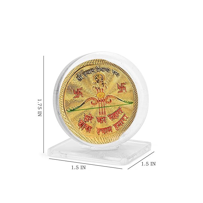 DHRUVS COLLECTION Gold Plated Khatu Shyam Baan Idol 3D Acrylic Photo Frame Stand for Home Decor, Car Dashboard, Office Table, Pooja, Temple, Workplace, Housewarming Gift (1.75 x 1.5 Inch)