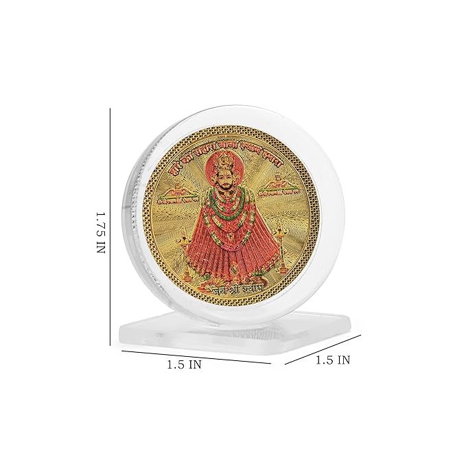 DHRUVS COLLECTION Gold Plated Khatu Shyam Idol 3D Acrylic Photo Frame Stand for Home Decor, Car Dashboard, Office Table, Pooja, Temple, Workplace, Housewarming Gift (1.75 x 1.5 Inch)