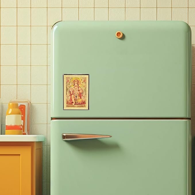 DHRUVS COLLECTION Gold Plated Panchmukhi Hanuman Ji Fridge Magnet with Lacquer Coating for Home Decor, Kitchen, Car Dashboard, Main Door, Office, Pooja, Temple, Workplace