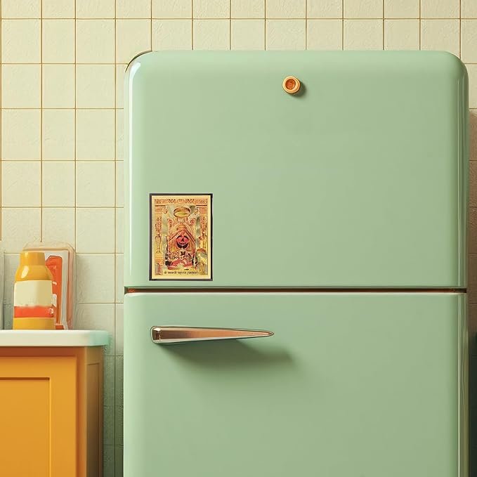 DHRUVS COLLECTION Gold Plated Salasar Balaji Fridge Magnet with Lacquer Coating for Home Decor, Kitchen, Car Dashboard, Main Door, Office, Pooja, Temple, Workplace