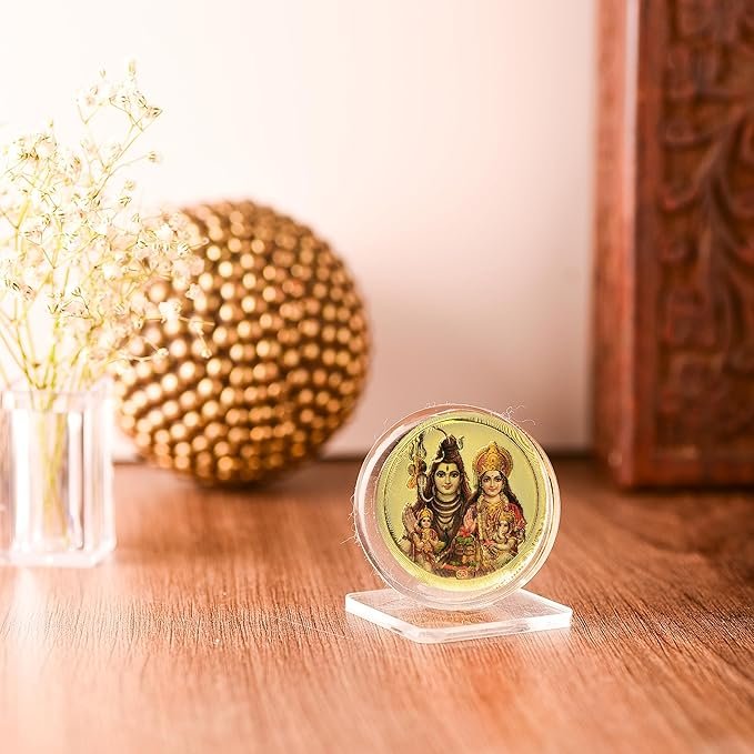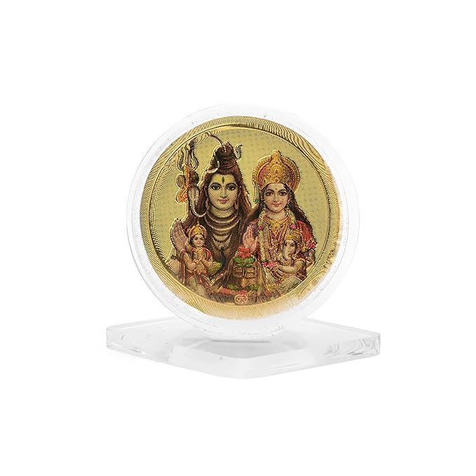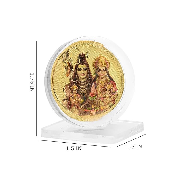 DHRUVS COLLECTION Gold Plated Shiv Parvati Parivar Idol 3D Acrylic Photo Frame Stand for Home Decoration, Car Dashboard, Office Table, Pooja, Temple, Workplace, Housewarming Gift (1.75 x 1.5 Inch)
