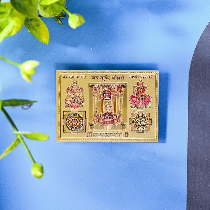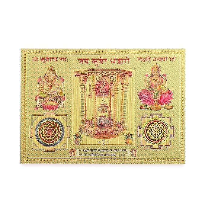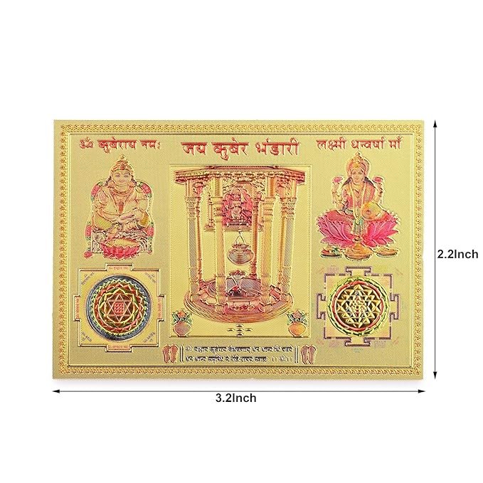 DHRUVS COLLECTION Jai Kuber Bhandari – Lakshmi Dhan Warsha Maa Yantra Self Adhesive Small Pocket Size Gold Plated Yantra Sticker for Worship, Car, Home, Office, Pooja & Temple Use (2.2 x 3.2 Inches)