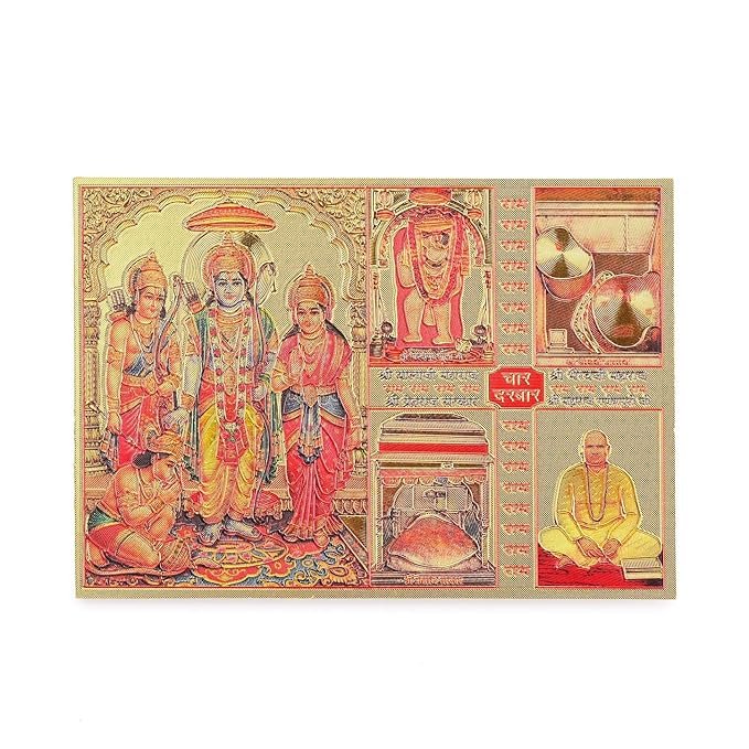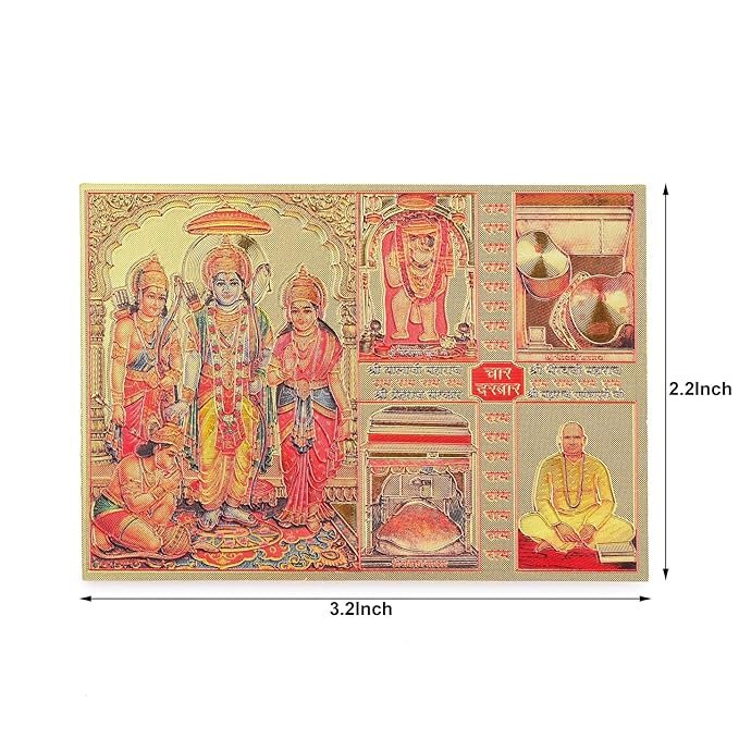 DHRUVS COLLECTION Self Adhesive Small Pocket Size Gold Plated Ram Darbaar Sticker for Worship, Bike, Car, Home, Office, Pooja Ghar & Temple Use (2.2 x 3.2 Inches)