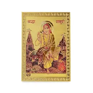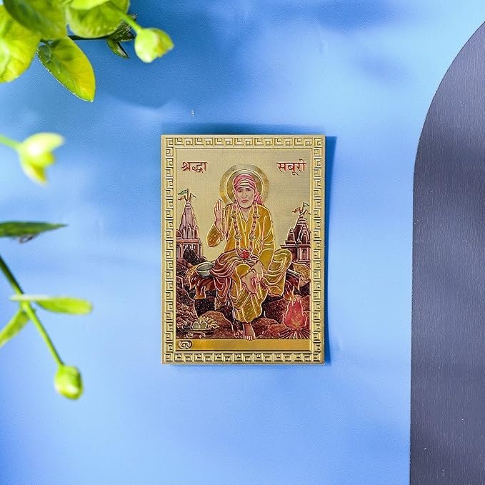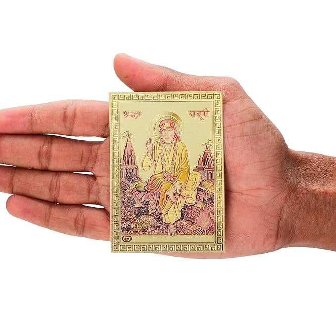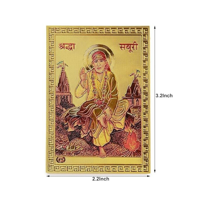 DHRUVS COLLECTION Self Adhesive Small Pocket Size Gold Plated Sai Baba Sticker for Worship, Bike, Car, Home, Office, Pooja Ghar & Temple Use (2.2 x 3.2 Inches)