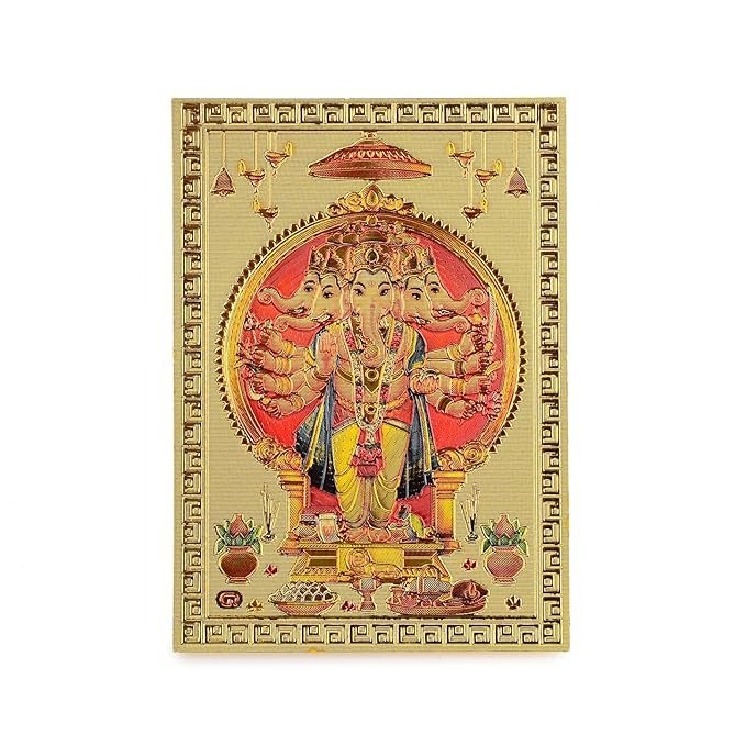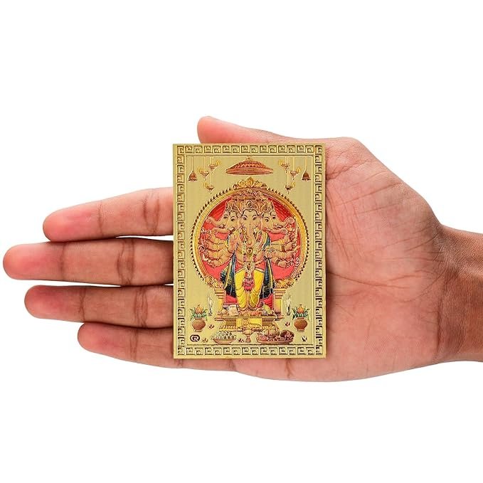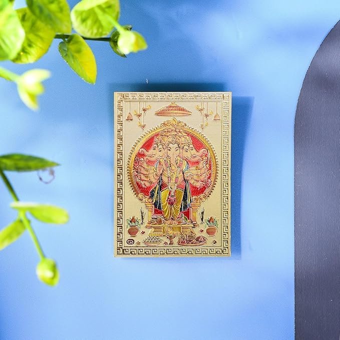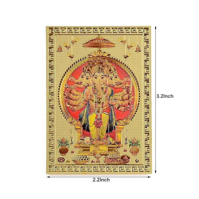 DHRUVS COLLECTION Self Adhesive Small Pocket Size Gold Plated Shree Panchmukhi Ganeshji Sticker for Worship, Bike, Car, Home, Office, Pooja Ghar & Temple Use (2.2 x 3.2 Inches)
