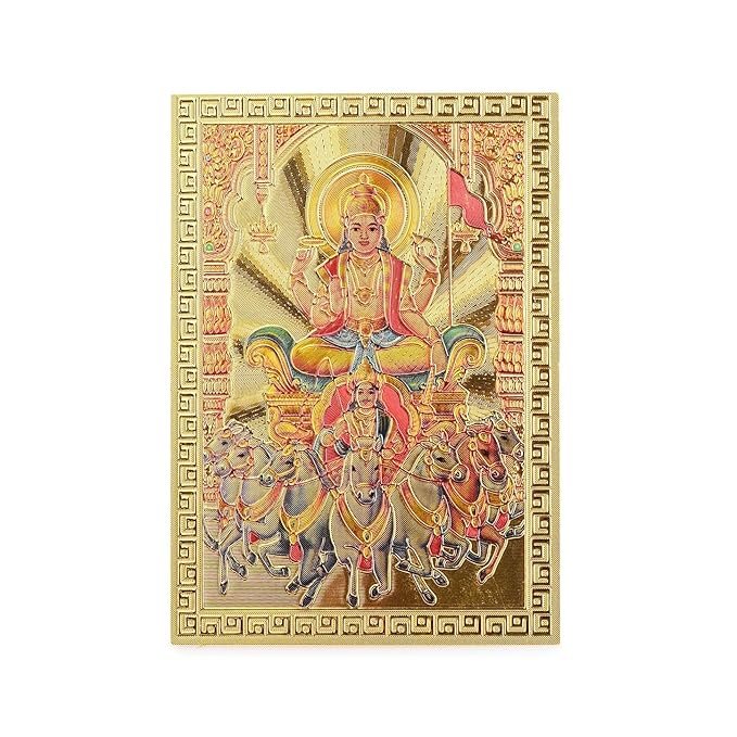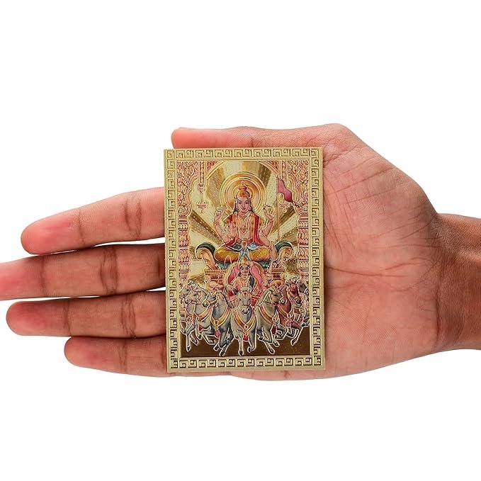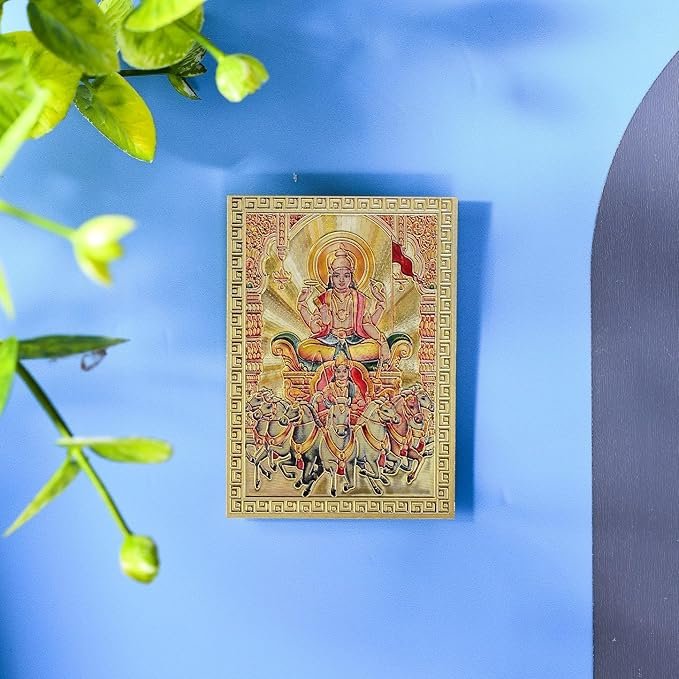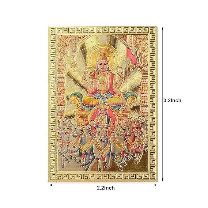DHRUVS COLLECTION Self Adhesive Small Pocket Size Gold Plated Surya Dev with 7 Horses Sticker for Worship, Bike, Car, Home, Office, Pooja Ghar & Temple Use (2.2 x 3.2 Inches)