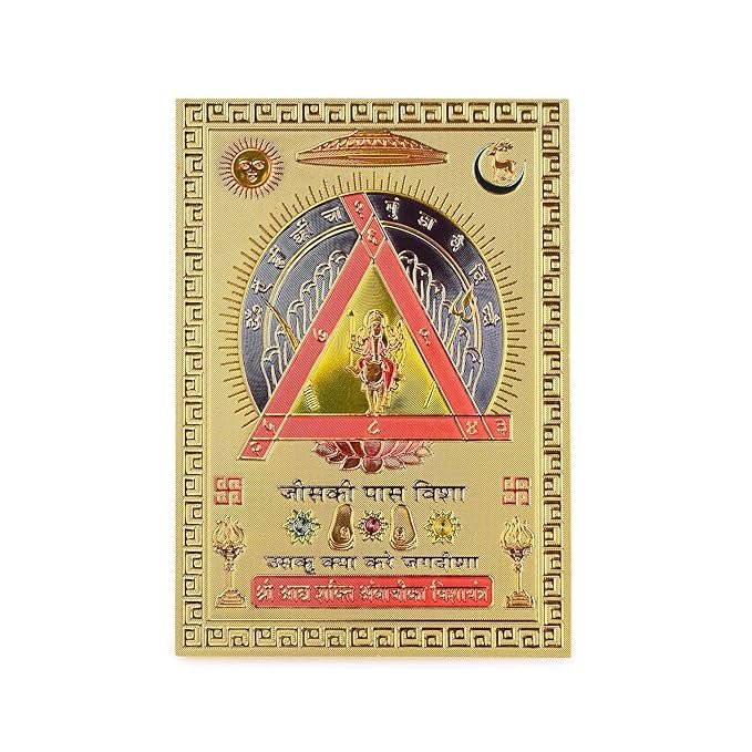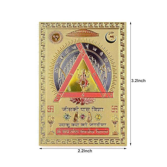 DHRUVS COLLECTION Shree Aagh Shakti Ambaji ka Visha Yantra Self Adhesive Small Pocket Size Gold Plated Yantra Sticker for Worship, Bike, Car, Home, Office, Pooja Ghar & Temple Use (2.2 x 3.2 Inches)